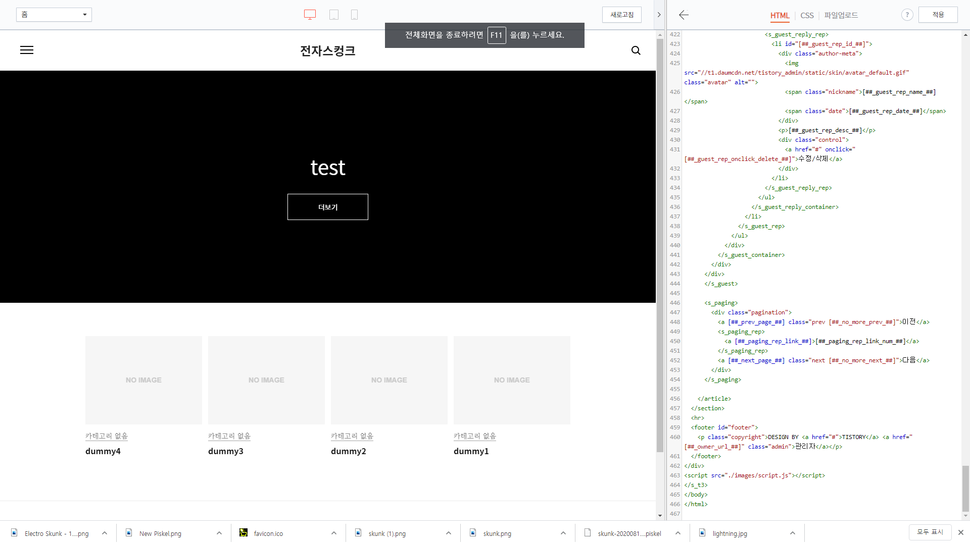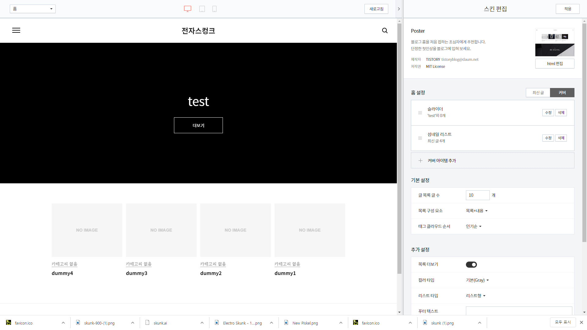 자, 이제 왼쪽 미리 보기 창을 새로고침 해봅시다. 스킨을 편집했으면 항상 잘 나오는지 확인을 해야겠죠?